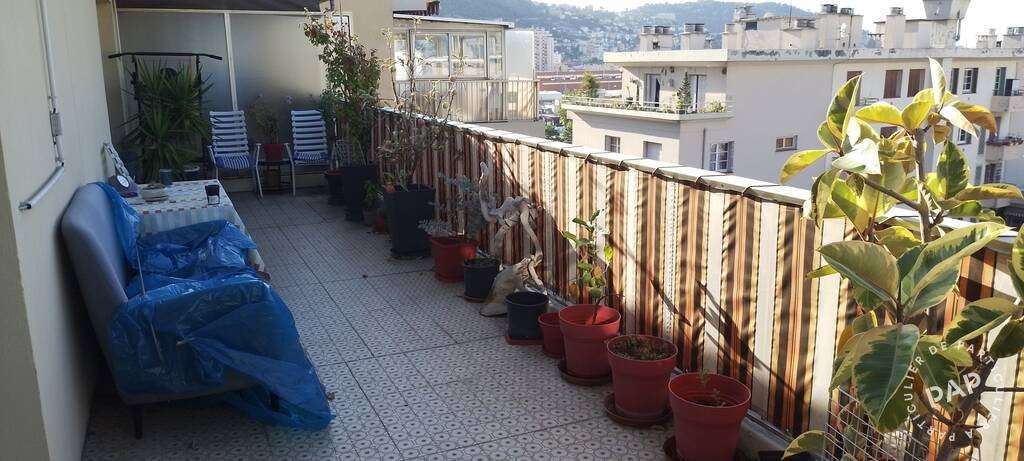!! Uniquement particuliers, professionnel s'abstenir, merci. Pasteur, dans une rue calme, résidence sécurisée, dernier étage 8è, (ni voisins ni vis-à-vis), appartement traversant E/O de 55 m2 disposé comme suit : (chaque pièce donne sur terrasse et balcons) terrasse : 25 m2, balcons filants : 9 m2 , véranda : 8,50 m2 volets électriques, fibre optique salon climatisé : 16 m2, chambre : 14 m2 cuisine semi équipée séparée salle de bain (sol et plomberie refaits) avec fenêtre. Commerces, transports, scolaires, hôpital, le tout à proximité à pied vues château, monastère, mont Boron, Observatoire, aperçu mer. Possibilité parking. Charges trimestrielles 750 euros (eau chaude, eau froide, chauffage central, charges communes etc.). Diagnostics en cours.