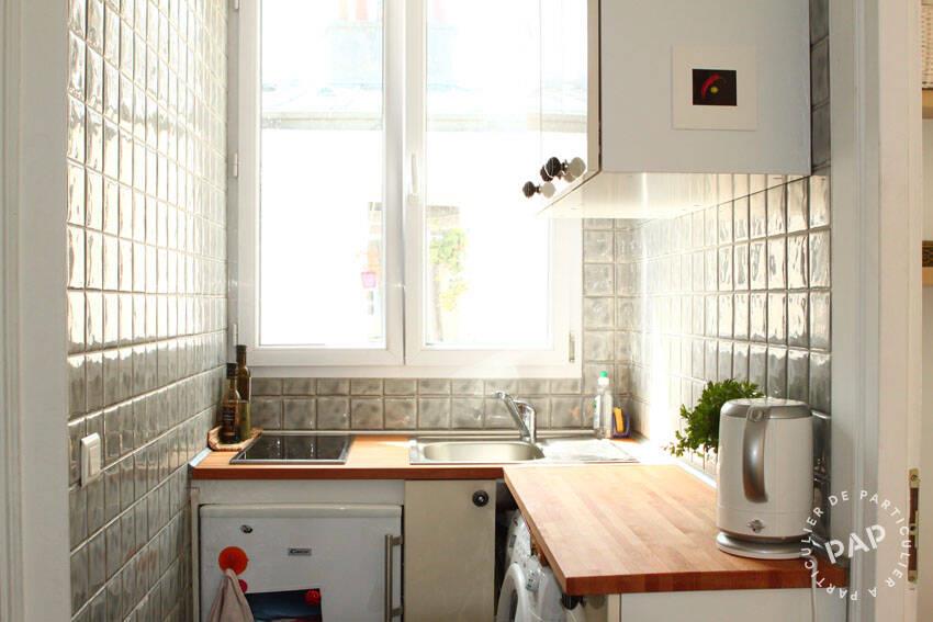 Appartement meublé 2 pièces, 21 m². Vue sur cour intérieure, calme, lumineux, dernier étage (5ᵉ sans ascenseur). Pièce d'entrée avec grand placard et cuisine (frigo, plaques induction, four, machine à laver), table pliante. Pièce de vie avec lit 140, petit bureau et étagère. Salle de bains : wc, douche, lavabo. Chauffage et chauffe-eau électriques. Propre, calme, lumineux. Métro Marcadet-Poissonniers à 2 minutes à pied, lignes métro 4 et 12. Garant.E demandé (e). Visites à convenir. M'appeler par Whatsapp si besoin. Dpe en cours.