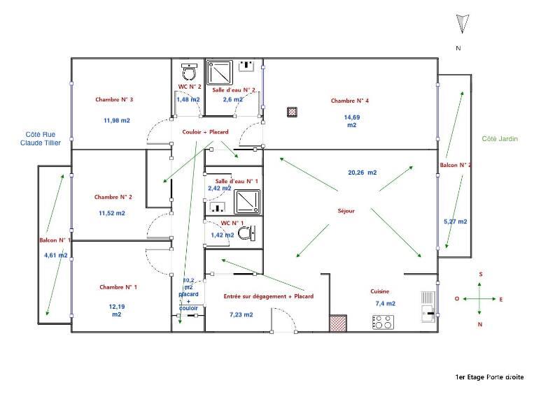 Entre Nation - Faidherbe et Reuilly Diderot - appartement familial circulant, le nez dans la verdure, calme et lumineux, 4 vraies chambres dont une suite parentale, ascenseur, plan idéal (facilement modulable), 2 wc, 2 salles d'eau, 2 balcons double exposition, 4 grands placards intégrés, refait à neuf en 2022 - parquet/matériaux de qualité. 2M50 H sous plafond. Plus : Une température idéale toute l'année : le positionnement au 1er étage, souvent perçu comme un inconvénient, devient ici un atout en matière de confort thermique. L'été, l'appartement reste agréablement frais, même en période de canicule (venez voir par vous-même), l'hiver, l'isolation et l'exposition conservent efficacement la chaleur. Immeuble (1973) familial, sécurisé, avec gardienne salariée bienveillante et disponible, très bien entretenu - charges chauffage collectif/gardienne/jardin (500 euros/mois). Syndic et conseil syndical très réactifs, raccordement au réseau de chauffage urbain de la Mairie de Paris (Cpcu) accepté (estimé à fin réduction à venir des charges de chauffage). Cave aménagée 4 m2, plusieurs locaux vélo. Possibilité achat double box fermé 30 m2 (en sus). Impôt foncier 2182 euros. Dossier complet sur demande. Situation exceptionnelle, proche hypercentre Paris, transports, jardins et bois de Vincennes, nombreux restaurants et commerces. Situé dans une rue animée et charmante, à quelques mètres du 11e, l'appartement profite d'une ambiance familiale, commerçante et dynamique : • Nombreux restaurants réputés : thaï, breton, tibétain, italien, bar à cocktails, cafés, brasserie, maison du déchet, meilleur croissant de Paris 2025 (faubourg), librairies, bibliothèques, supermarchés (Auchan, Lidl, Carrefour, Monoprix, Picard…), artisans, écoles, services de santé (hôpital Saint Antoine)et transports. • Métros, Rer, bus à moins de 5 minutes à pied : accès rapide à toute la ville, 30 minutes maximum pour rejoindre n'importe quel quartier de Paris à vélo ou transports. • Écoles et formations à proximité immédiate : Rue de Reuilly, Sainte-Clotilde, Saint-Michel de Picpus, La Sorbonne… Un appartement rare à Paris : familial, confortable, bien pensé et bien situé. Visites week-ends et semaine après 18h30. (Arrangements possibles sur d'autres créneaux)