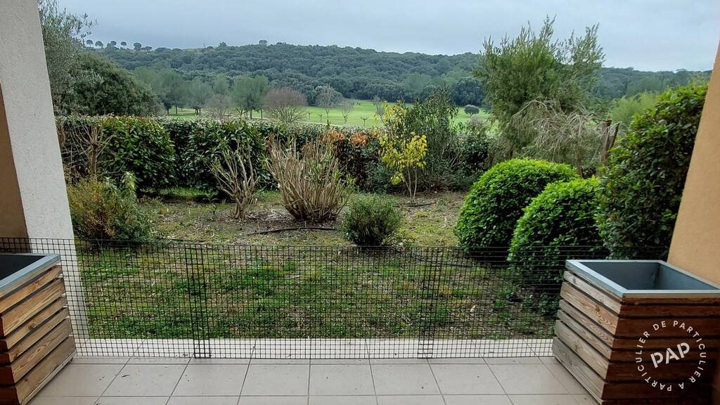 Dans un domaine hautement sécurisé et verdoyant, une piscine et la vue en première ligne sur le golf, à louer un appartement de 44 m², disposé comme suit : un séjour de 20 m², une cuisine équipée (plaque induction, hotte, réfrigérateur, lave-vaisselle, four et four M.O.), une chambre de 11 m² avec placard, une salle de bain avec baignoire et chauffe serviette, un Wc séparé, une entrée avec placard, emplacement pour lave-linge, un cellier de 5 m² et une terrasse de 6 m², orientation Sud. Chauffage électrique, eau chaude par cumulus. Un emplacement de parking.