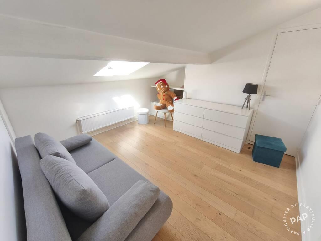 Duplex traversant au dernier étage Vue dégagée Calme Cave & débarras Paris 18e Guy Môquet / Cimetière de Montmartre. Situé au 4e et dernier étage dun immeuble ancien bien entretenu (sans ascenseur), ce duplex traversant de 84 m² au sol (63,5 m² Carrez) allie charme, agencement optimisé et tranquillité, à proximité immédiate des commerces et des transports. Un intérieur lumineux et fonctionnel. Au premier niveau : Une pièce de vie traversante et baignée de lumière, Une cuisine ouverte sur mesure, pensée pour allier design et praticité, Un salon / salle à manger avec de nombreux rangements intégrés, Des toilettes indépendantes. À létage : Deux chambres sous combles, dont une suite parentale de plus de 20 m² au sol avec espace bureau, Une salle de bain équipée d'une baignoire, dune douche et de wc. = Possibilité de créer une 3ème chambre en scindant la chambre parentale. Caractéristiques Chauffage et eau chaude assurés par une chaudière à condensation individuelle avec thermostat connecté, Fibre optique installée, Vue dégagée, appartement très calme sur rue peu passante, Cave & débarras à linter-étage + stationnement vélo possible dans la cour, Charges mensuelles : 200 , Aucune procédure en cours ni travaux votés, Dpe : classe D. Cadre de vie recherché À 3 min à pied de Guy Môquet, 5 min de La Fourche et 8 min de Place de Clichy, le quartier est idéal pour une vie de famille ou de jeunes actifs : écoles (maternelle, primaire, collège), commerces de bouche, restaurants, ateliers de réparation vélo et garage à proximité. Agences sabstenir.