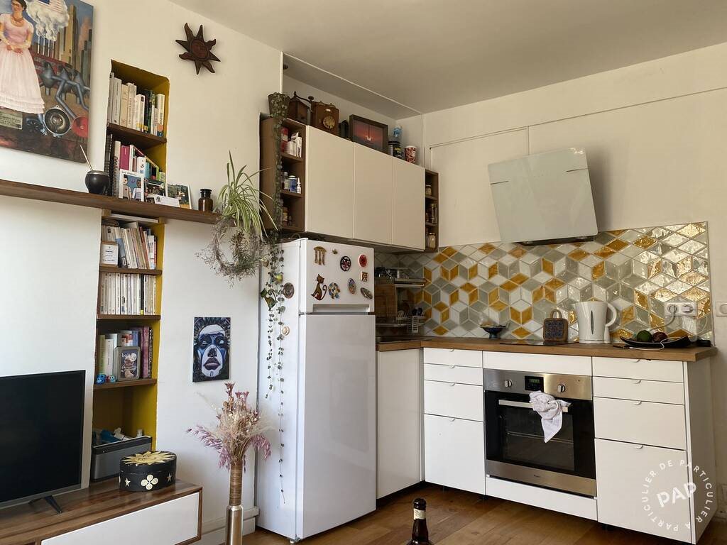 Appartement 2 pièces, situé au 5ème étage sans ascenseur dans copropriété ancienne. Surface de 25 m² environ. Composé d’un séjour avec cuisine équipée, une chambre, une salle d’eau avec wc. Points forts : Très bon état, refait 2019 avec double vitrage, volets électriques, parquet et peintures, proximité métro et commerces. Points faibles : Pas d’ascenseur.
