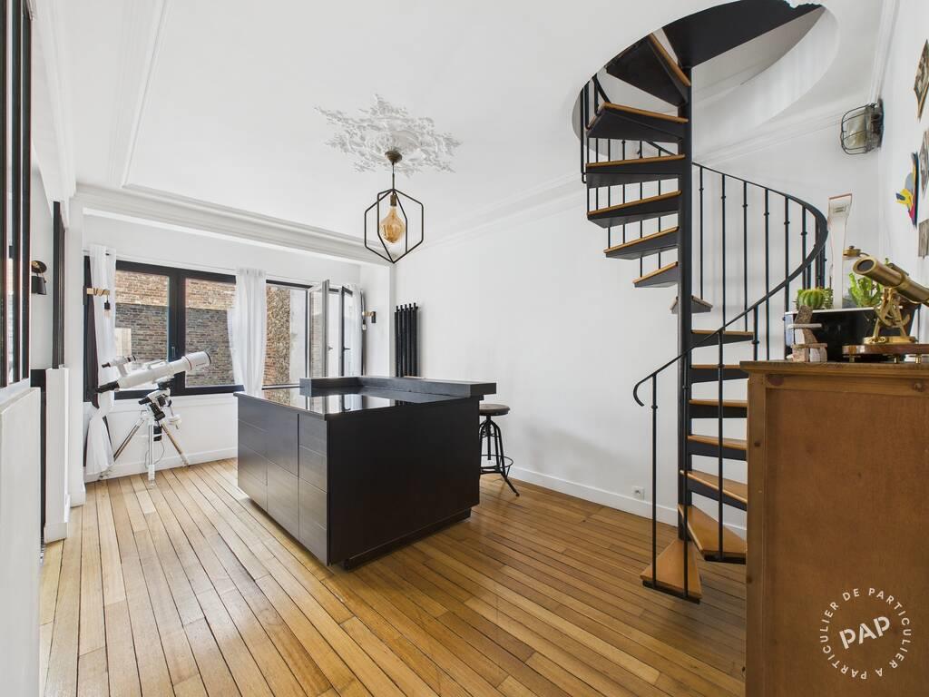 Idéalement situé dans une impasse au calme, à proximité des commerces et commodités et à 5 minutes à pied du Métro Place de Clichy (Lignes 2 et 13). Bel appartement en duplex de 110m², en très bon état (refait à neuf il y a 4ans), beaucoup de charme, bien agencé, situé au 5ème et 6ème étage d'un immeuble sécurisé, il se compose : - d'une entrée donnant dans un couloir et desservant une grande chambre, un agréable séjour lumineux avec balcon, une salle à manger avec cuisine ouverte, équipée et aménagée avec ilot central roulant et escalier en colimaçon, une salle d'eau et un wc séparé avec lave mains - A l'étage : deux belles chambres dont une avec balcon, une salle de bains avec double vasque et toilette, et un petit couloir menant vers un bureau avec dressing Chauffage électrique. Double vitrage. Cave. Charges copropriété : 3600€ Taxe foncière : 2139€