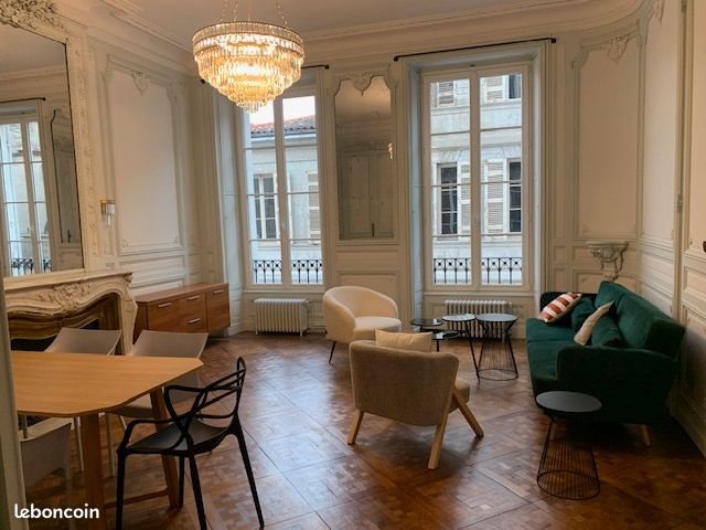 Appartement Rare. Disponible immédiatement, quartier Saint-Michel (proche place Camille Pelletan). Cet appartement traversant de 133 m2 aux prestations haussmanniennes conservées est situé au 1er étage d'un ancien hôtel particulier en pierres. L'élégance de la vie Bordelaise à deux pas du tram, des commerces et du centre-ville (à 5 min de la grosse cloche). Une vaste entrée raffinée (22 m2) dessert une salle à manger - séjour très lumineuse de 27 m2, deux chambres très grandes (18 et 26 m2 ), une salle de bains avec toilettes, wc indépendant, et très grande cuisine ( 27 m2). Bien que refait à neuf ( électricité, double vitrage, puit de lumière dans la cuisine, porte d'entrée sécurisée ...) le caractère ancien de cet appartement traversant, très lumineux, avec ses 5 fenêtres de 3 mètres de hauteur sur le devant de l'immeuble a été conservé (parquet, hauteur sous plafond, cheminées, moulures) qui ajoutent une touche de raffinement à cet appartement. Ce bien offre un mode de vie " tout à pied". Une cave réaménagée offrant des espaces de rangement complète ce bien Unique. Possibilité ou non de louer la place de parking appartenant à l'appartement à 5 minutes dans un petit parking privé sécurisé refait à neuf , 100 € de plus par mois. Petite copropriété. Le chauffage est au gaz et l'appartement possède une chaudière individuelle dans un local au rez-de chaussée. Ce même local sécurisé peut accueillir des vélos électriques, des prises sont disponibles. Il est loué meublé( vous permettant de vous installer sans délai, la cuisine neuve est entièrement équipée (machine à laver, lave-vaisselle, fours....). Ce bien est présenté à la location pour la première fois. Loyer : 1.840 € + 50 € charges Total : 1890 € Dpe : E.