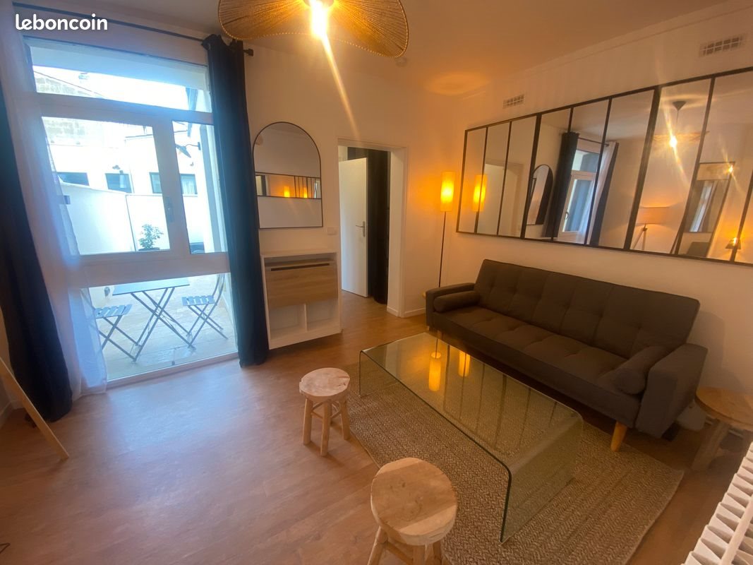 T2 meublé avec terrasse – Quartier Bonnac / Saint-Bruno – Tram A Adresse : 82 rue de Vincennes, 33000 Bordeaux À deux pas du Tram A – arrêt Saint-Bruno / Hôtel de Région, du centre-ville et des commerces de la barrière Judaïque, découvrez ce T2 meublé de 43 m² avec terrasse privative de 10 m², situé dans un immeuble calme et bien entretenu du quartier Bonnac sécurisé par vidéo surveillance. L’Appartement, décoré avec goût et équipé de mobilier récent, se compose de : • Un salon lumineux avec une grande fenêtre vitrées ouvrant sur la terrasse, canapé, table basse en verre et luminaires design. • Une cuisine équipée (réfrigérateur, plaques de cuisson, micro-ondes, lave-linge) avec espace repas. • Une chambre séparée avec literie neuve, grand placard et rangements. • Une salle de bains avec baignoire. • Wc indépendant. • Fenêtres double vitrage Schuco pour fenêtre donnant sur la rue et chauffage gaz individuel. • Terrasse privative avec coin lounge et coin repas équipés (Salon de jardin, table et chaises, Parasol) Les atouts du bien : Terrasse plein sud – Meublé moderne – Calme – Proximité immédiate tram & centre – Quartier recherché. Loyer mensuel : 880 € Cc • Charges : 10 € (provision eau, entretien, etc.) • Dépôt de garantie : 2 mois de loyer hors charges Zone soumise à encadrement des loyers • Loyer de référence majoré : 19,20 €/m² – soit 825,60 € • Complément de loyer : 44 € Conditions • Location meublée (bail d’un an renouvelable) • Garant ou caution parentale exigée • Idéal pour jeune actif Contact : merci d’indiquer votre profil, votre situation et vos disponibilités pour une visite. Quartier Bonnac – Bordeaux centre – Tram A à 100.