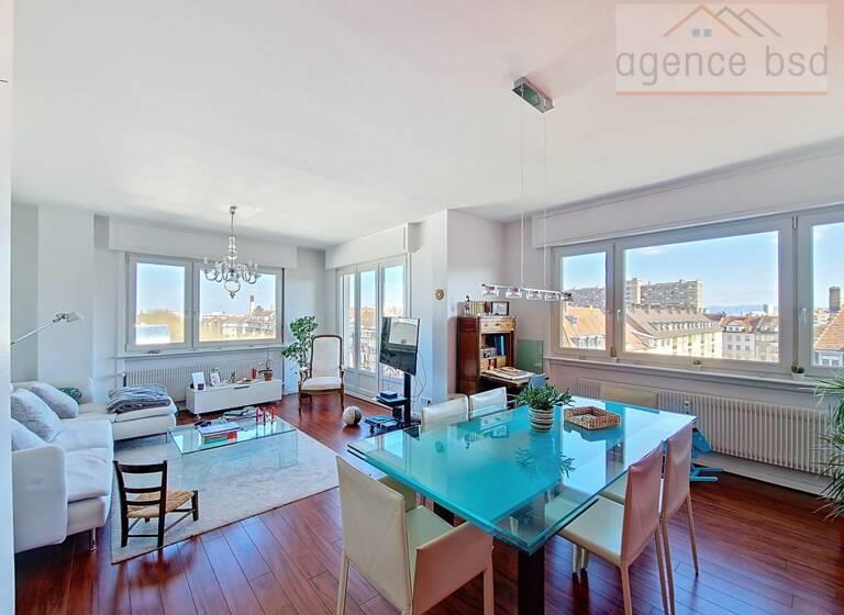 A vendre Quartier des Musiciens, secteur Orangerie, Boulevard de la Marne. Dans un immeuble de bon standing, découvrez ce superbe appartement de 4/5 pièces, vues imprenables, ensoleillé et lumineux, 112,70 m2 au 6e étage avec ascenseur. Les volumes harmonieux de ce bien vous proposent 1 double séjour d'angle de 32 m2, agrémenté d'un balcon découvert, 1 cuisine ouverte, 3 chambres, 1 salle de bains/WC et 1 Wc séparé. Ce bien en excellent état, organisé autour de la cuisine ouverte, vous offre un espace de vie fluide et convivial. En annexe, 1 cave. En option, en sus : 1 Garage (Box fermé) dans l'immeuble. Cuisine équipée Parquets doubles vitrages volets électriques rangements Sdb avec baignoire et grande douche chauffage et eau chaude collectifs au fuel. A proximité immédiate du Parc de l'Orangerie, de commerces, marché, écoles, facultés, transports Surface Carrez 112,70 m2 Double séjour 32 m2 balcons 5,2 m2 . Copropriété bien entretenue de 42 lots principaux sur 102 au total : ravalement côté cour réalisé en 2024. Charges réelles de 2024 : 267 /mois. Honoraires inclus de 4.56% Ttc à la charge de l'acquéreur. Prix hors honoraires 526 000 . Dans une copropriété de 102 lots. Quote-Part moyenne du budget prévisionnel 5 134 /an. Aucune procédure n'est en cours. Classe énergie D, Classe climat D Montant estimé des dépenses annuelles d'énergie pour un usage standard : entre 2376.00 et 3214.00 sur les années 2021, 2022 et 2023 (abonnements compris). Les informations sur les risques auxquels ce bien est exposé sont disponibles sur le site Géorisques : . Votre conseiller ' Agence Bsd ' : Gérant - Franck TEBOL Carte T Cpi 67[Coordonnées masquées]32 593 Rcp