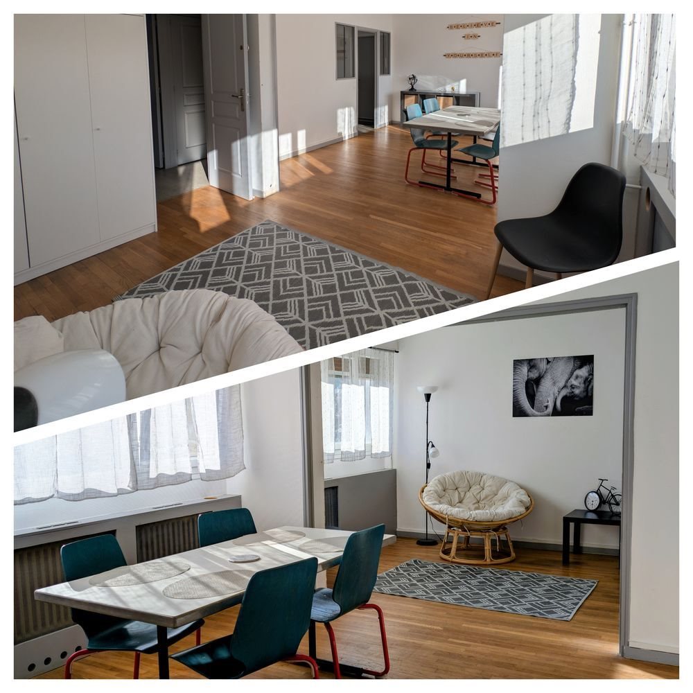 ? Besançon – Rue Victor Grignard Appartement T4 de 80 m², situé en rez-de-chaussée surélevé, entièrement rénové en 2021, dans un quartier calme et proche de toutes commodités (tram, commerces...) ✔️ 3 chambres avec dressing / bureau ✔️ Pièce de vie 27 m² lumineuse (salon, salle à manger) ✔️ Cuisine indépendante + loggia ✔️ Balcon + cave Rénovation 2021 -Électricité -Fenêtres & volets roulants -Murs