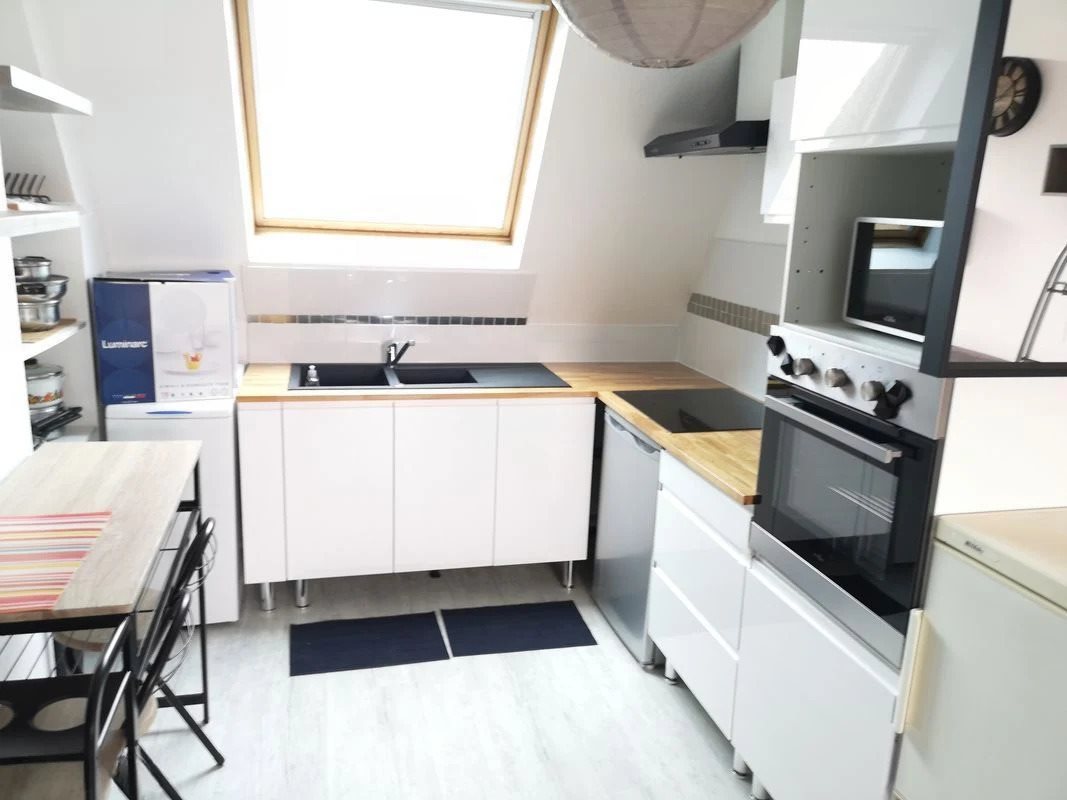 T2 duplex Porte d'Arras Appartement de 38 m2 à louer sur Lille Uniquement pour étudiants avec caution des parents, loue un joli T2 duplex traversant – double exposition, très lumineux. Il est situé à proximité des commerces, à 5 minutes du métro porte d'Arras ou 15 minutes du métro république, très facile de rejoindre les axes routiers qui sont à 4 minutes en voiture (A1, rocades, etc ...) dans un immeuble résidentiel très calme de 4 logements. Stationnement non payant. Le logement a été entièrement rénové en 2020 : changement du revêtement de sols (parquet flottant gris), peinture des murs, changement du mobilier, nouvelle cuisine toute équipée avec four chaleur tournante, micro-onde, plaque vitrocéramique, branchement Lave-linge et lave-linge fourni - idem pour la salle de bain : changement du lavabo pour un meuble vasque, changement du carrelage murale, etc ... Nouvelle vaisselle complète, aspirateur et kit nettoyage fournis. Il n'y aura plus qu'à poser vos valises. Les charges comprennent l'eau froide, les ordures ménagères. Le loyer est de 660 € et 35 € de charges soit 695 € Cc. La douche est mansardée : pour votre confort, une personne au delà de 1.70 risque de ne pas être à son aise. Restant à votre disposition. Référence annonce : 67ee611badl Consommation énergétique : 250 kWh/m²/an Emission de gaz à effet de serre : 50 CO2/m²/an Dépôt de garantie : 1220 € Montant des charges : 35 € / mois Modalité de récupération des charges locatives : provision avec régularisation annuelle