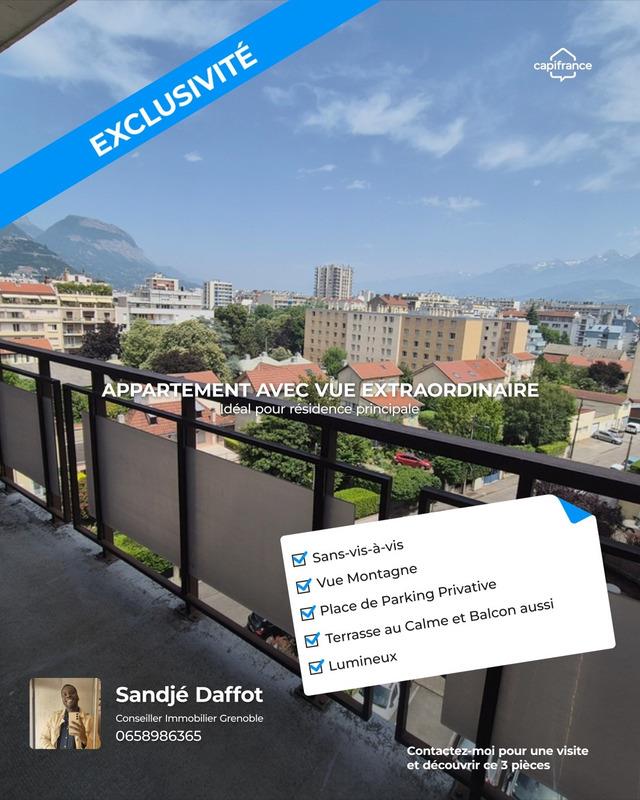 Vue Belledonne & Chartreuse – Calme absolu en intérieur de copropriété Grenoble, située entre les massifs du Vercors, de Belledonne et de la Chartreuse, offre un cadre de vie privilégié où la culture, la nature et les mobilités douces se rencontrent harmonieusement. Ville dynamique et innovante, elle séduit autant les actifs, les investisseurs avisés que les retraités en quête de confort et de qualité de vie. Un secteur recherché, la Rue des Eaux Claires est pratique, vivante et parfaitement desservie En effet, cet appartement bénéficie d'un emplacement stratégique à proximité des commerces, transports, parcs, services médicaux et établissements scolaires. Le quartier allie le confort de vie de proximité et espaces verts facilement accessibles avec des accès rapides aux transports en commun et à la rocade. Une copropriété bien tenue et agréable L'immeuble, de bon standing, propose des parties communes soigneusement entretenues et un environnement sécurisé et convivial. La gestion de l'ensemble assure un cadre de vie serein, apprécié autant par les propriétaires occupants que par les résidents de longue date. Mais son atout majeur ? L'appartement donne entièrement sur l'intérieur de la copropriété, loin de tout axe passant. Les amoureux du calme, de la vue dégagée et des perspectives alpines sont tout simplement au bon endroit. Un appartement lumineux, spacieux et ouvert sur les montagnes Situé en étage, cet appartement de quasiment 72 m², initialement conçu en T3, a été transformé en T2 afin de créer des volumes généreux et un espace de vie de plus de 30m². Il comprend : Un séjour double avec un accès à la terrasse de 11m², sans vis-à-vis, avec une vue imprenable sur Belledonne, Une chambre spacieuse et lumineuse de plus de 13m², avec accès terrasse Un deuxième espace extérieur offrant une vue sur la Chartreuse, parfaits pour les moments de détente, Une cuisine indépendante meublée et équipée, avec accès au balcon et meubles de rangement Une douche fonctionnelle, Un Wc séparé, Un hall d'entrée fonctionnel, Un dressing, Un sol en marbre qui apporte luminosité et raffinement. Le tout s'accompagne de prestations rares : Une place de parking privative au pied de l'immeuble, Une cave pour un rangement optimal Idéal pour primo-accédant, actif et retraité, ce 3 pièces réunit confort, tranquillité, lumière et une vue exceptionnelle — le tout au cœur du secteur des Eaux Claires. Pour visiter ou obtenir davantage d'informations, contactez-moi dès maintenant et venez découvrir cette véritable pépite avec vue à couper le souffle. Nombre de lots de la copropriété : 40, Montant moyen annuel de la quote-part de charges (budget prévisionnel)(Entretien, assurance immeuble, fonds de travaux Alur, ascenseur, entretien chaudière) : 1320€ soit 110€ par mois. Les honoraires sont à la charge du vendeur. Les informations sur les risques auxquels ce bien est exposé sont disponibles sur le site Géorisques : Georisques. Gouv. Fr. Réseau Immobilier Capifrance - Votre agent commercial (Rsac N°832 768 980 - Greffe de Grenoble) Sandjé Daffot Entrepreneur Individuel - Réf.929847