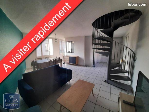Bellevue - À Louer : Appartement T3 meublé en duplex de 63.10m² situé Rue Crozet Boussingault à St Etienne. Dans le quartier de Bellevue. L'appartement se compose en bas d'une cuisine semi ouverte sur le séjour et à l'étage de deux chambres confortables avec range...