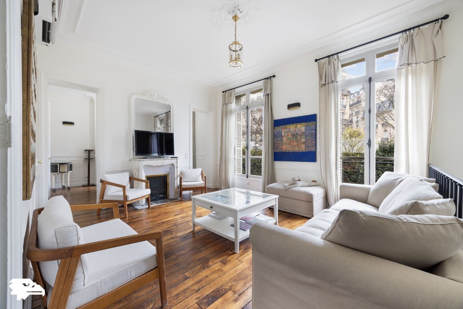 À proximité immédiate du Triangle d'Or, place de l'Alma, en bordure du 8ᵉ arrondissement, découvrez ce magnifique appartement meublé avec jardin-terrasse végétalisé à l'abri des regards. Ce bien, particulièrement cosy, lumineux et calme, offre une superficie de 98 m² (loi Carrez) en rez-de-chaussée surélevé, aménagé sur deux niveaux et entouré de verdure avec une espace d'exterieur de 45m2 . Entièrement rénové avec des matériaux haut de gamme, l'appartement est presque totalement meublé et climatisé (pompe à chaleur). Au premier niveau, il comprend une entrée, un séjour, une salle à manger, une cuisine équipée ouvrant sur le jardin, une chambre avec vue sur jardin, ainsi qu'une salle de bains avec Wc. Le deuxième niveau, situé à l'entresol, dispose d'une chambre, d'une pièce supplémentaire utilisable comme dressing ou bureau avec un lit d'appoint, d'une salle de douche et de Wc séparés. Un parking extérieur est proposé en option. Situé dans un immeuble haussmannien de standing avec ascenseur, le loyer mensuel charges incluses s'élève à 4600 euros (loyer hors charges : 4 420 euros, charges mensuelles : 180 euros, provision révisable annuellement selon les comptes de copropriété). Le dépôt de garantie est à 8 840 €. Les coûts annuels d'énergie sont estimés entre 2160 euros et 2980 euros (selon Dpe E au prix moyen des énergies indexé au 1er janvier 2021). Honoraires pour un bail régi par le code civil (habitation secondaire, logement de fonction, bail société pour usage d'habitation par un mandataire social ou collaborateur) : 12 % Ttc du loyer annuel. Pour un bail d'habitation principale suivant la loi Alur, nous consulter. Le négociateur agit sous le statut d'agent commercial immatriculé au Rsac de Nanterre. Plus de détails, photos Hd et visites virtuelles à 360° disponibles sur le site de l'Agence. Plus de détails, photos Hd et visites virtuelles à 360° disponibles sur le site de l'Agence.
