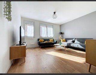 A louer appartement 3 pièces de 68 m² entièrement rénové et meublé. Clé en main. - Salon meublé : 2 canapés, 2 tables basses, meuble télé, Tv, 2 commodes. - Cuisine séparée toute équipée : réfrigérateur, four, micro-ondes, plaques de cuisson, bouilloire, cafetière, grill...