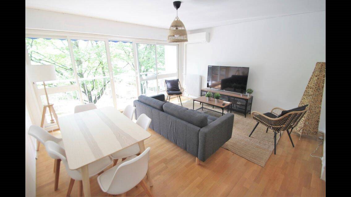 Visite virtuelle : « Vidéo YouTube sur demande » Bel appartement de 110m² situé rue de l'Ermitage Sainte Catherine à Lormont dans une résidence sécurisée avec une vue sur le parc arboré à 4min à pied du Tram Gravières. Bail individuel permettant de recevoir l’...