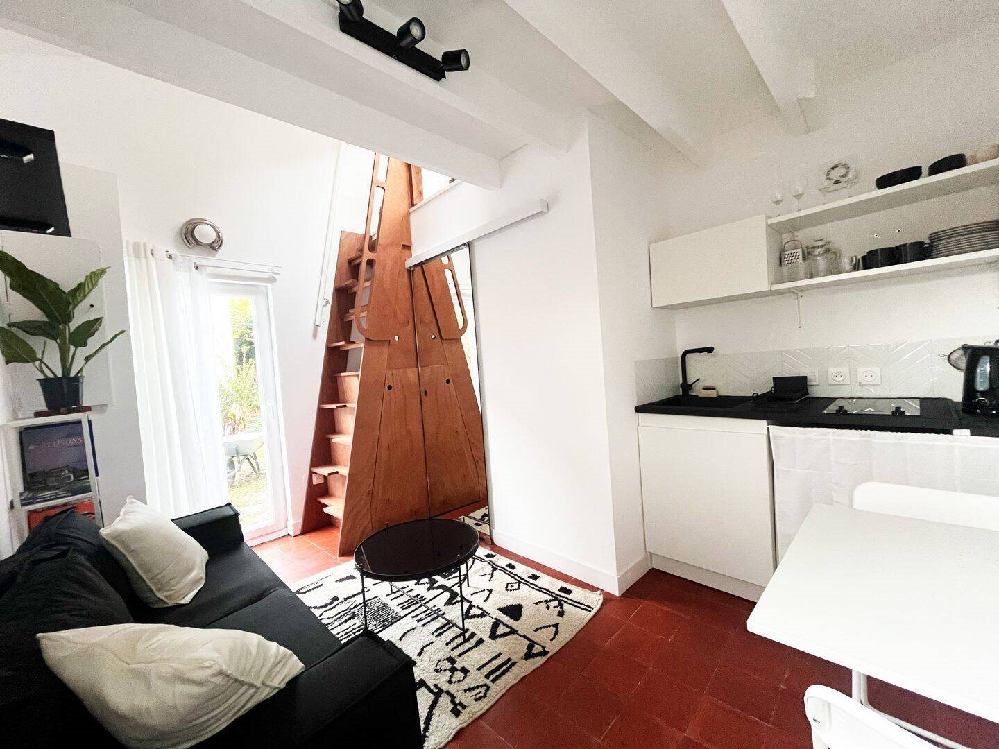 Cette maisonnette mezzanine avec jardin, située dans un quartier paisible à quelques minutes de la gare a été aménagée de manière originale. Tout a été pensé pour vous offrir un cadre agréable et pratique : kitchennette équipée, grand lit double en mezzanine, pe...