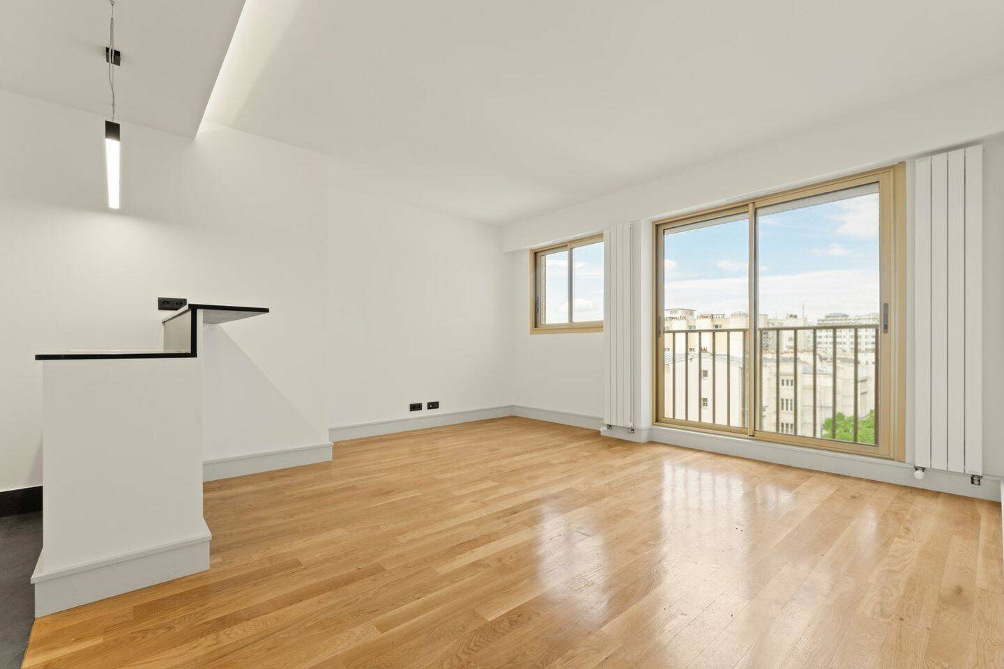 A deux pas de la butte Montmartre , nous vous proposons un grand studio entièrement refait à neuf situé au 7ème étage avec ascenseur et gardien . L'appartement se compose : - d'un double séjour lumineux avec de nombreux espaces de rangements - d'une cuisine américaine entièrement équipée avec plan de travail en pierre naturel : placards , hotte , plaque , lave-vaisselle, frigo , congélateur , four , machine à laver … - une salle de douche prestigieuse L'appartement a bénéficié d'une rénovation complète . Caractéristiques de localisation : - à quelques pas du métro : ligne 4 et ligne 2 - nombreuse lignes de bus à proximité - proche des commerces et des écoles ( commerce alimentaire , restaurants , etc. ) . L'immeuble bénéficie également de places de parking avec accès directement au logement . Charges / mois : 128 euros