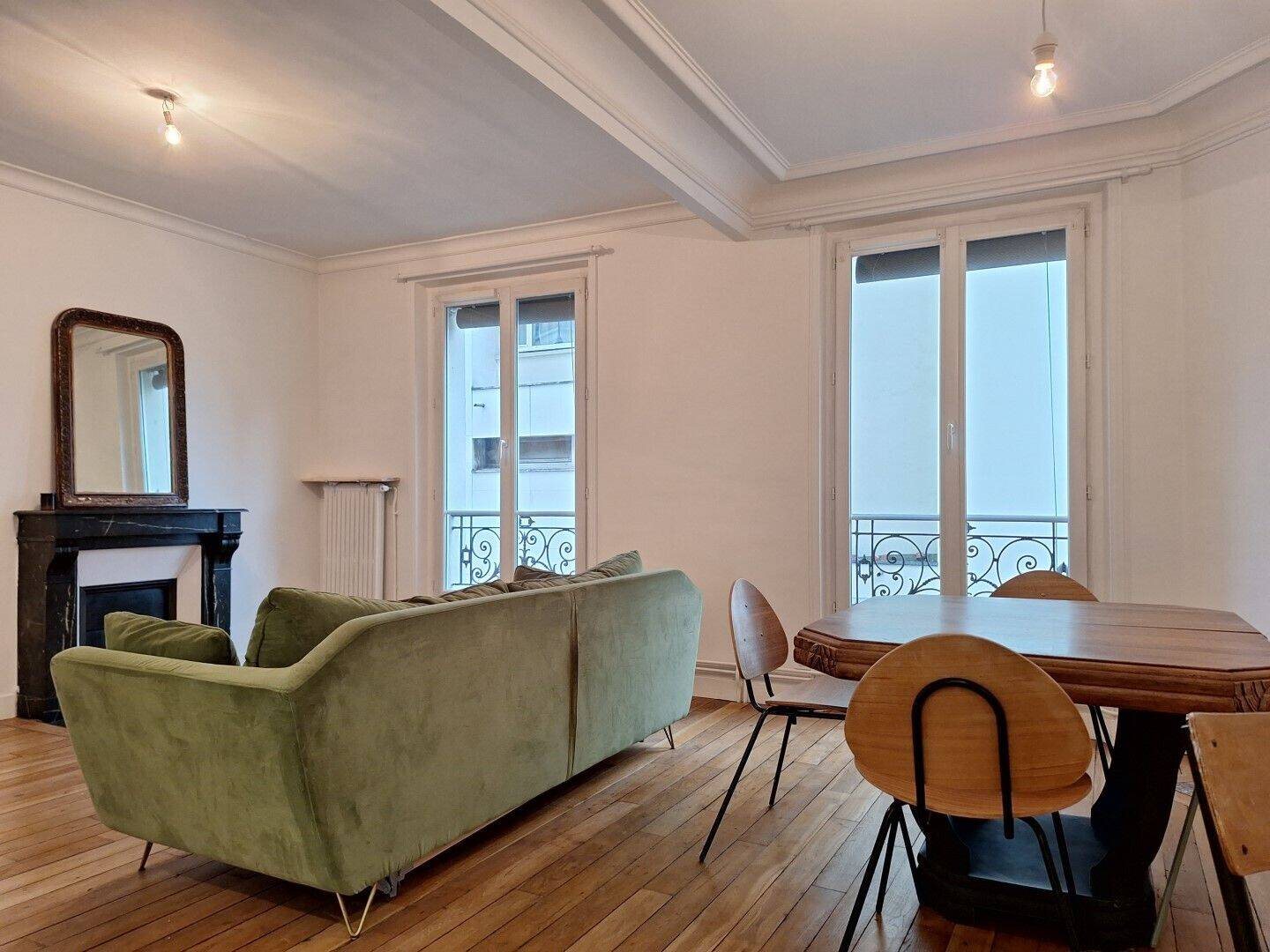 Rue de Tanger. Bel immeuble 1900 en pierre de taille. 1Er étage Sans ascenseur. 2 pièces de 43m2 comprenant : entrée, double-séjour, chambre, cuisine aménagée, salle de douche avec wc. Parquet, cheminée, moulures. Location meublée.