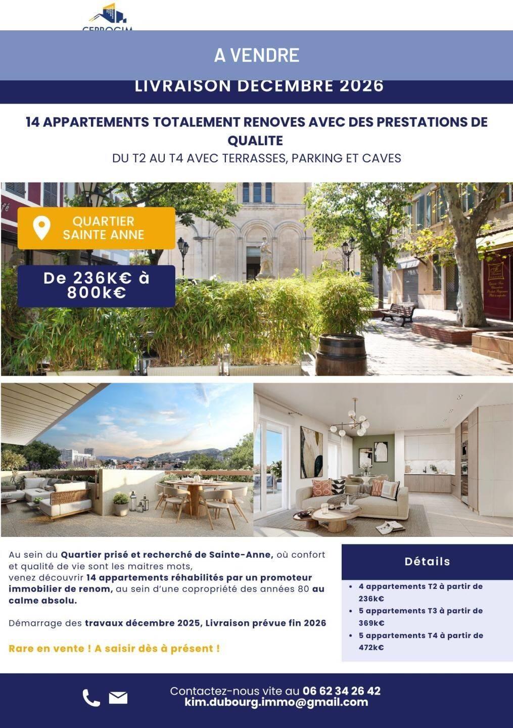 Exclusivité – T4 lumineux avec terrasse et box – Quartier Sainte-Anne Situé dans le quartier recherché de Sainte-Anne, à proximité des commerces et du boulevard Michelet, Ceprogim Colin vous propose à la vente ce T4 traversant de 99,42 m² avec terrasse exposée pl...