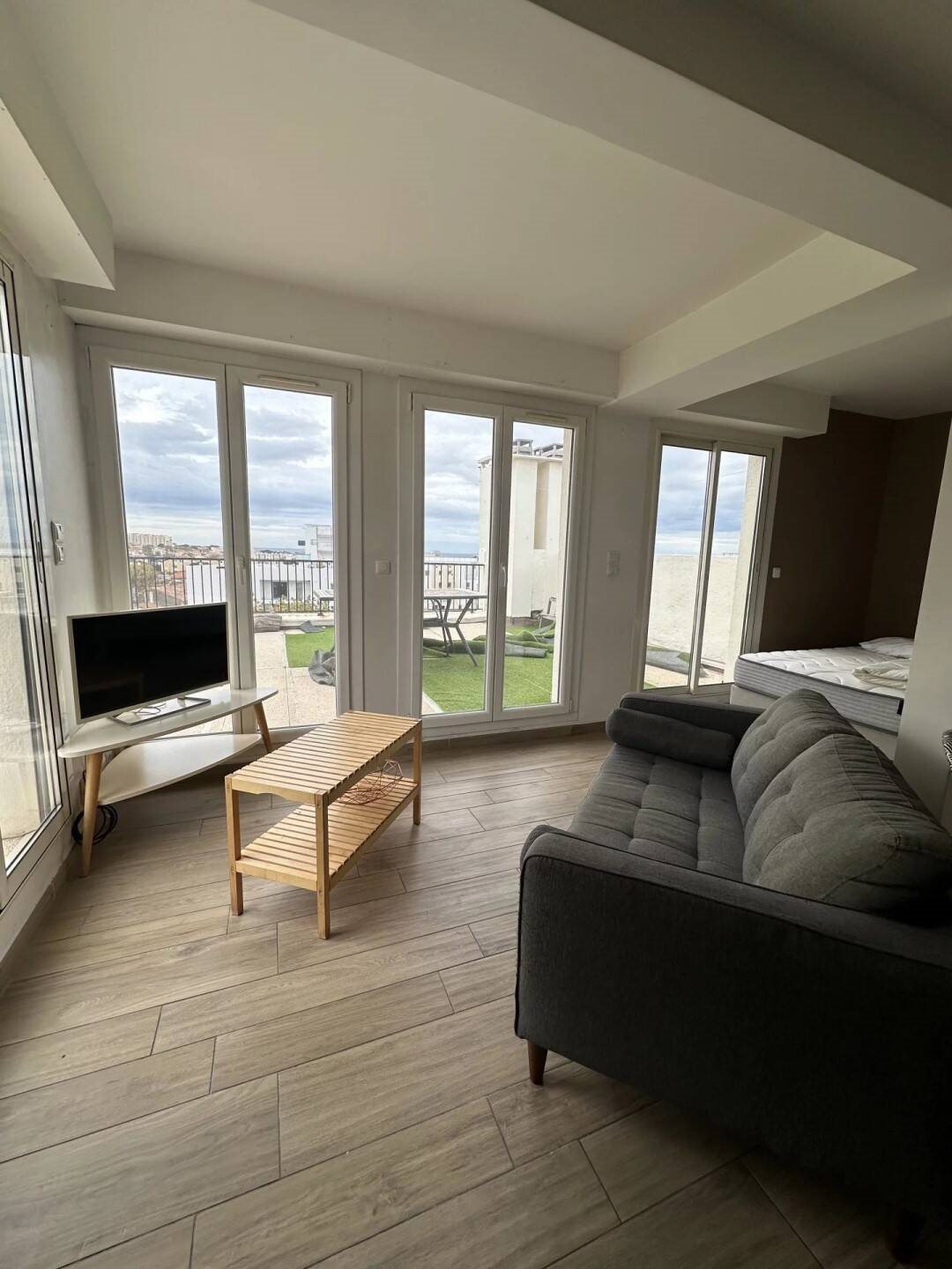A louer, bel appartement studio avec terrasse de 90 m2 vue mer - 13008 Marseille Situé dans une résidence fermée et sécurisée avec piscine. Cet appartement de 28 m² est au 4ème et dernier étage de l'immeuble. Il est agrémenté d'une terrasse de 90 m² avec vue m...