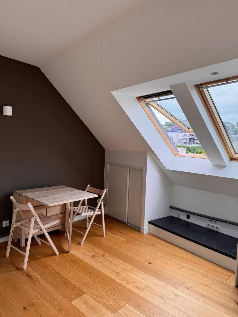 À louer, à proximité immédiate de la gare de Rouen, très bel appartement meublé de type F1 bis d'une surface de 20,49 m². Il comprend une cuisine entièrement équipée ouverte sur le séjour, un petit dressing, une chambre avec salle de douche, des rangements ainsi qu'un Wc séparé. Dpe : D Disponible à partir du Loyer hors charges : 539 € Charges : 31 € (eau froide et entretien des parties communes) Dépôt de garantie : 1 078 € (deux mois de loyer hors charges) Honoraires de location : 225,39 € dont 61,47 € pour la réalisation de l'état des lieux d'entrée. Mathis Moyon (Ei) Agent Commercial - Numéro Rsac : - .