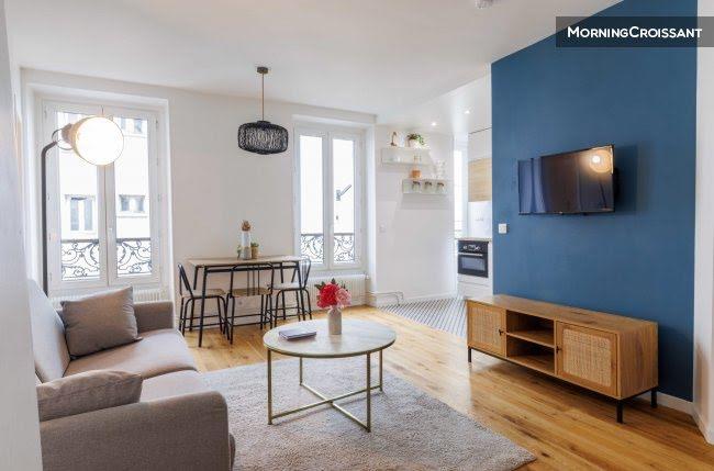 Superbe appartement de 48m2, situé à 4 minutes à pied du parc des Buttes-Chaumont. Il s'agit d'un appartement au 2eme étage sans ascenseur. Il se compose de: - Une cuisine ouverte, équipée et fonctionnelle : frigidaire, plaques de cuisson, machine à café, grille-pain, bouilloire, four, lave vaisselle, lave linge ... - Un salon avec un canapé et Tv - Une chambre avec un lit double - Un dressing - Une salle d'eau avec douche - Wc séparé - Des rangements - Tv et Internet haut débit - Draps et serviettes de toilettes fournis Vous aurez accès à l'ensemble de l'appartement, pour vous sentir comme chez vous. Nous sommes disponibles à tout moment, par téléphone, email ou Sms. --- Pour Les Check-In En SEMAINE Horaire d'arrivée : entre 15h et 18h Early check-in (sous réserve de possibilité) Late check-in (sous réserve de possibilité) : entre 19h et 23h : 30 euros (sujet à disponiblité d'un agent) EN WEEK-END Entre 19h et 23h : 50 euros (sujet à disponiblité d'un agent) Tout paiement pour les check-ins devra se faire en espèce directement à la personne faisant le check-in. A défaut de paiement, la personne ne sera pas en mesure de vous remettre les clefs