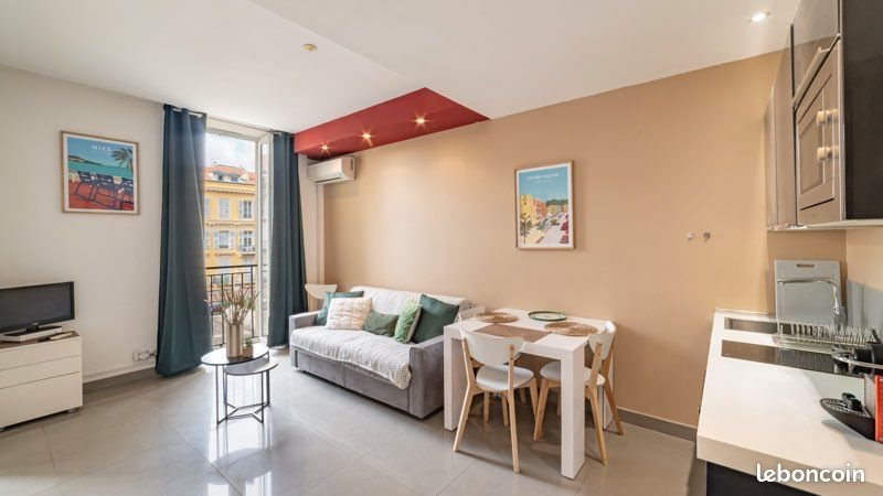 Bail Mobilité Uniquement Location entre 1 mois - 6mois Nice Rue Masséna - magnifique 2 pièces en parfait état, climatisé. Il se compose d’un séjour avec cuisine ouverte équipée, une petite chambre avec placard , salle de douche avec wc. 3 eme étage avec ascenseur. Tarif dépend de la durée du bail . Disponible de suite