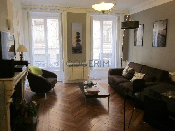 Lyon 6 - Rue de Sèze - Location meublé de Prestige Grand et bel appartement de type T2 de 56m² traversant et exposé sud/nord au 1er étage/6 Idéalement situé dans le quartier très prisé du 6è arrondissement et entièrement meublé. Comprenant une entrée qui dessert u...