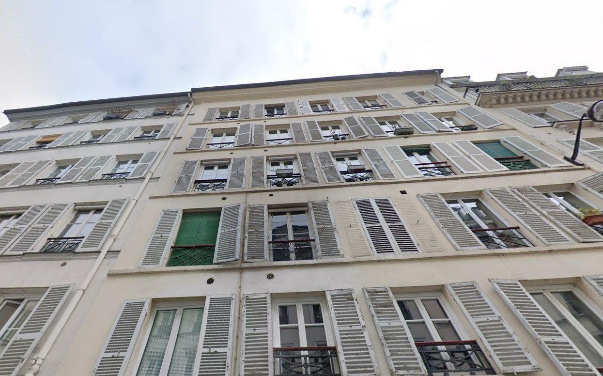 Métro Filles du Calvaire - Dans un bel immeuble ancien avec cour et local vélos, au 6ème et dernier étage sans ascenseur, studio 8.5m² comprenant une pièce principale avec kitchenette, grand placard, banquette lit, et salle d'eau avec Wc.