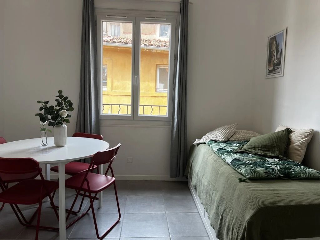Appartement de 25 m2 à louer sur Aix-en-Provence Location un appartement en duplex entièrement rénové et meublé de 25m2 situé 11 rue Campra, au coeur du centre ville. L'appartement se compose d'une belle pièce principale avec table, chaises, canapé convertible de type lit gigogne (lit 2 places 160 200), placards et une cuisine intégralement aménagée et équipée (électroménager dont lave linge, frigidaire, plaque, hotte, et micro ondes, également assiettes, poêles, verres, linge de maison..). A l'étage, une chambre avec lit double et velux, placard et une salle d'eau fermée avec Wc complète cet appartement situé au 3ème étage sans ascenseur. Mobilier tout neuf. Très bel appartement situé dans le coeur du centre ville, à 1 minute à pieds du cours Mirabeau. Appartement lumineux et au calme dans un petit immeuble du centre ville. Climatisation réversible. Entrée sécurisée avec interphone. Emplacement idéal dans les rues piétonnes d'Aix en Provence. LOYER mensuel : 1200€ charges comprises Dépôt de garantie : 2300€ (2 mois loyer HC) Charges : eau froide et entretien des espaces communs + box Adsl. Chercher un logement, c'est l'enfer, alors on a créé 123 Loger pour vous simplifier la vie. Combien ça coûte ? Vous réglez le pass de 29 euros (24 euros pour les étudiants). Le pass est mensuel, votre profil reste actif tant que vous restez abonné-e. Sans engagement, vous pouvez vous désabonner très facilement. Nous offrons une garantie satisfait-e ou remboursé-e pendant 3 mois. Comment ça marche ? Sur 123 Loger, ce sont les propriétaires qui contactent les locataires et ça change tout. 1- Vous définissez vos critères : villes, surface, budget, etc 2- Vous décrivez votre profil locataire : Cdi, étudiant, indépendant, revenus, garant, etc… Une fois pour toute ! 3- Les propriétaires consultent votre profil et vous contactent directement. À bientôt sur 123 Loger.