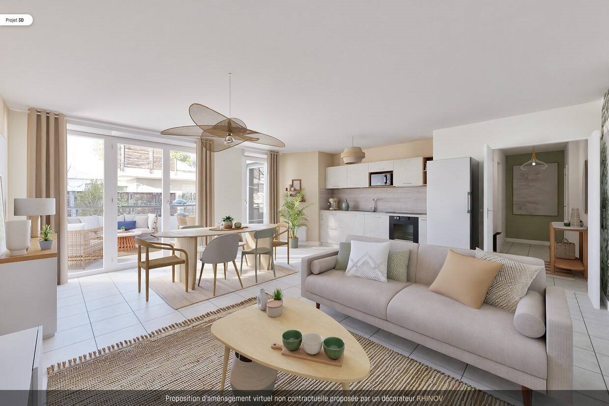 Grenoble - Le Patio Homes - Rue des Maquis de l'Oisans - Dans cette résidence avec accès sécurisé, nous vous proposons un appartement de 3 pièces + cuisine au 1er étage d'une superficie de 68.41m2.Il comprend une entrée qui dessert d'un coté la pièce à vivre a...