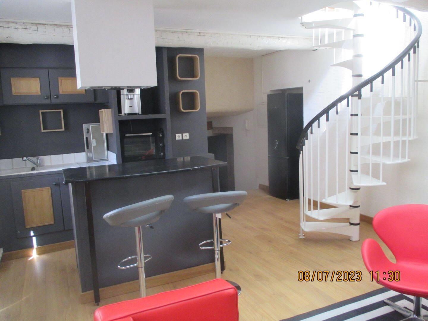 Nimes centre ville " quartier de l horloge " au 2e et dernier etage d un bel immeuble ancien rénové avec wifi et video surveillance Splendide Appartement en Duplex style Atelier D Artiste entierement meublé et décoré salon sejour avec grande verriere cuisine equ...