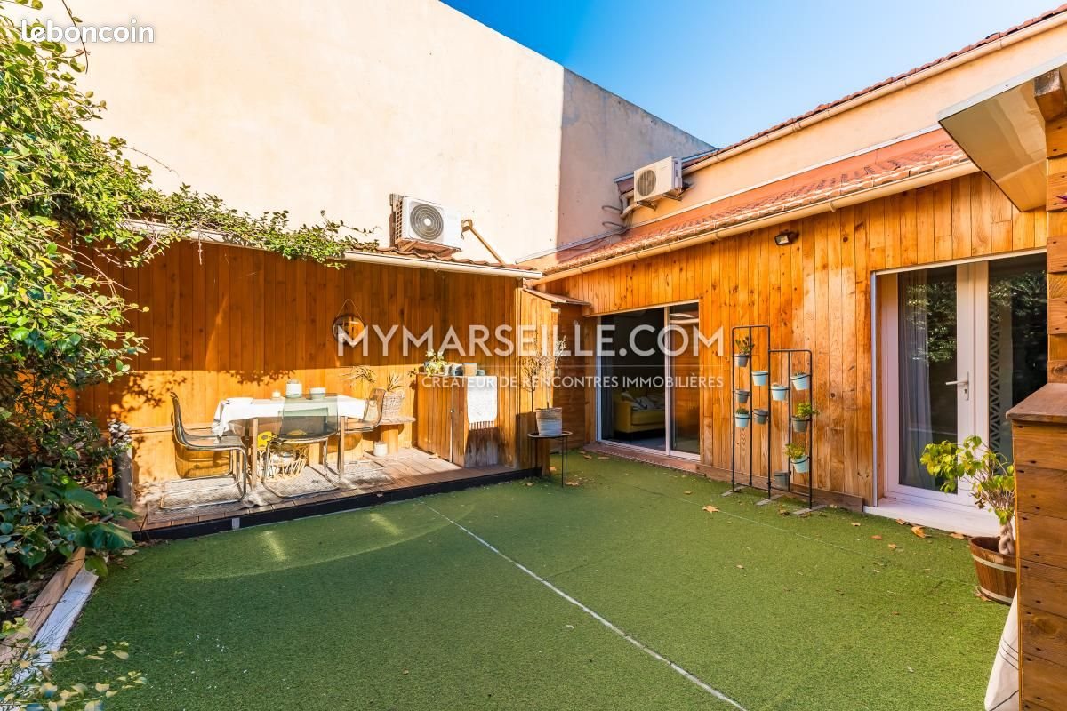 Maison Vente 112m² Marseille 10ème La Capelette Maison De Ville ? Capelette - 3 Chambres - Patio Nous vous proposons à la vente, une charmante maison individuelle, située au fond d'une impasse dans le secteur de la Capelette, 10ème arrondissement de Marseille, proche de toutes commodités, rénovée, avec trois chambres, un bureau et terrasse, et disposée sur deux niveaux. Au rez-de-chaussée, vous entrez sur un grand espace de vie chaleureux de 35m2. Vous trouverez une cuisine moderne et tout équipée, avec un îlot, ouverte sur le salon, qui vous amène directement sur un spacieux patio de 20m2, aménagé et exposé Sud-ouest. Une belle entrée, un Wc et une première chambre parentale avec salle d'eau attenante complètent ce niveau. A l'étage, l'espace se compose de deux chambres mansardées et d'un grand bureau, avec de nombreuses possibilités d'aménagement (dressing, salle de sport, salle de jeux). Vous y trouverez aussi une deuxième salle d'eau et un Wc séparé. Toutes les prestations sont de qualité : parquet stratifié, double vitrage, volets roulants, climatisation réversible, espaces extérieurs aménagés. Aucun travaux n'est à prévoir. Possibilité de garer deux voitures devant la maison. Ce bien est idéalement placé à deux pas des transports, des axes autoroutiers, commerces et écoles. N'hésitez pas à nous pour tous renseignements complémentaires. Ce bien est géré par un agent commercial de mymarseille Réf. Annonce : 121520 Référence annonce : Clb-121520-A Date de réalisation du diagnostic : Les honoraires sont à la charge du vendeur Montant estimé des dépenses annuelles d'énergie pour un usage standard : entre 1 430 € et 1 990 € sur les années 2021, 2022 et 2023 (abonnements compris).