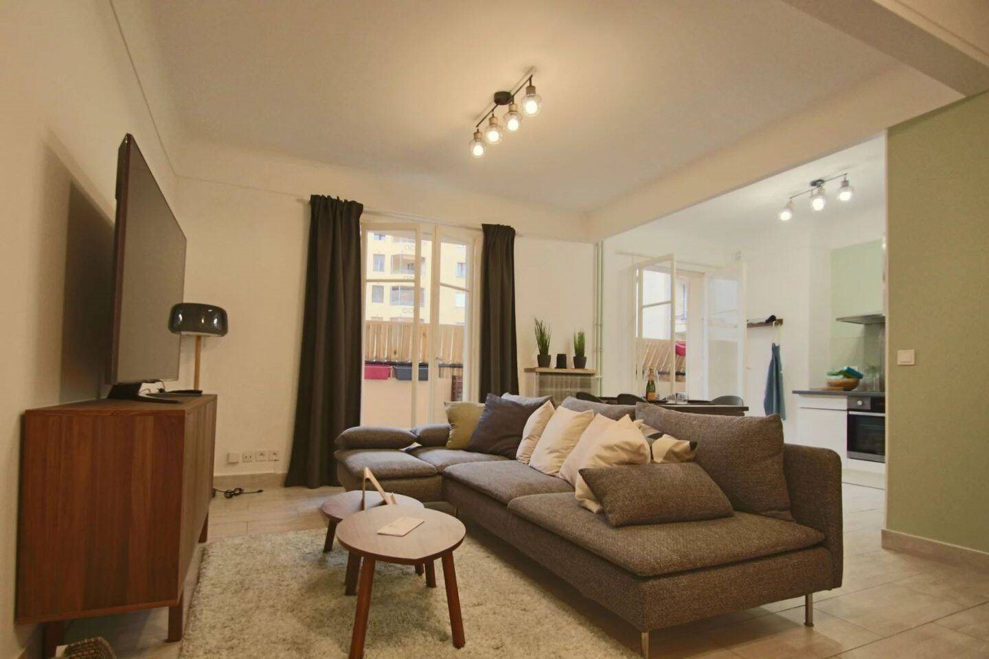 --1Er contact par mail, Svp, avant toute demande de visite Libre le : Au coeur de la Libération, superbe 2P de 50m2 entièrement rénové avec balcon-terrasse, entièrement meublé, très beau parquet dans la chambre, vaste séjour de 24m2 avec cuisine Us équipée amé...