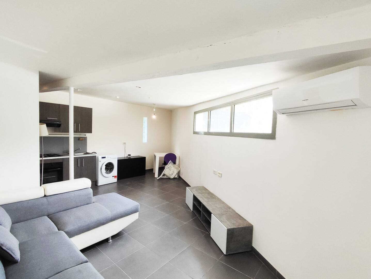 Appartement T2 meublé situé à Aix-en-Provence, Puyricard, au calme. En rez-de-jardin, d'une superficie de 41 m², il comprend un séjour avec cuisine équipée, une chambre avec placard, une salle d'eau avec Wc, un stationnement extérieur, ainsi qu'une terrasse avec jardin. Les charges incluent l'eau, l'électricité et Internet, et l'appartement est climatisé. Loyer 830€cc hon. 529€Ttc. Agence Aixoise d'Administration de Biens Immobilier Malherbe