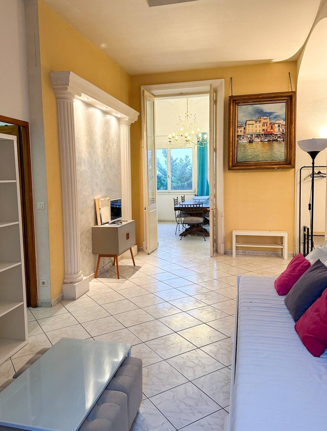 Location – Grand T2 meublé – Pointe Rouge (13008) À deux pas de la mer, ce grand T2 meublé de 70,54 m², traversant, est situé rue Luce, dans le quartier recherché de la Pointe Rouge. L’Appartement se trouve à 5 minutes à pied de la Plage de la Pointe Rouge et du Parc Pastré, offrant un cadre de vie agréable entre ville et nature. Situé en rez-de-chaussée surélevé d’un petit immeuble ancien, il bénéficie d’une belle hauteur sous plafond, apportant du volume aux pièces. L’Entrée dessert une cuisine équipée, une salle à manger, un salon, une chambre avec placard ainsi qu’une salle de bain avec Wc. Le bien est équipé du double vitrage et du chauffage au gaz. Atout rare : Une place de parking privative complète ce bien.