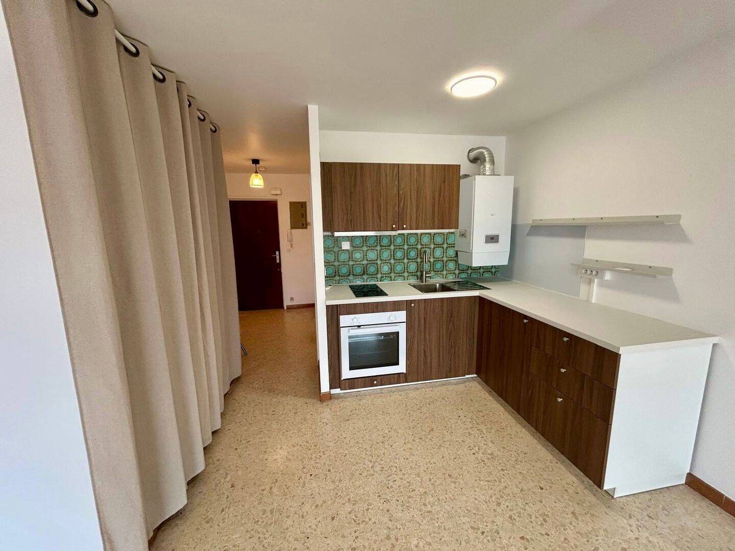 Location grand studio de 32m2 + loggia généreuse + cave - Fraîchement rénové, - grande cuisine équipée neuve (complète hors frigo), - nombreux rangements, - salle de bain avec emplacement prévu pour un lave linge - Grande baie vitrée double vitrage - Volet rou...