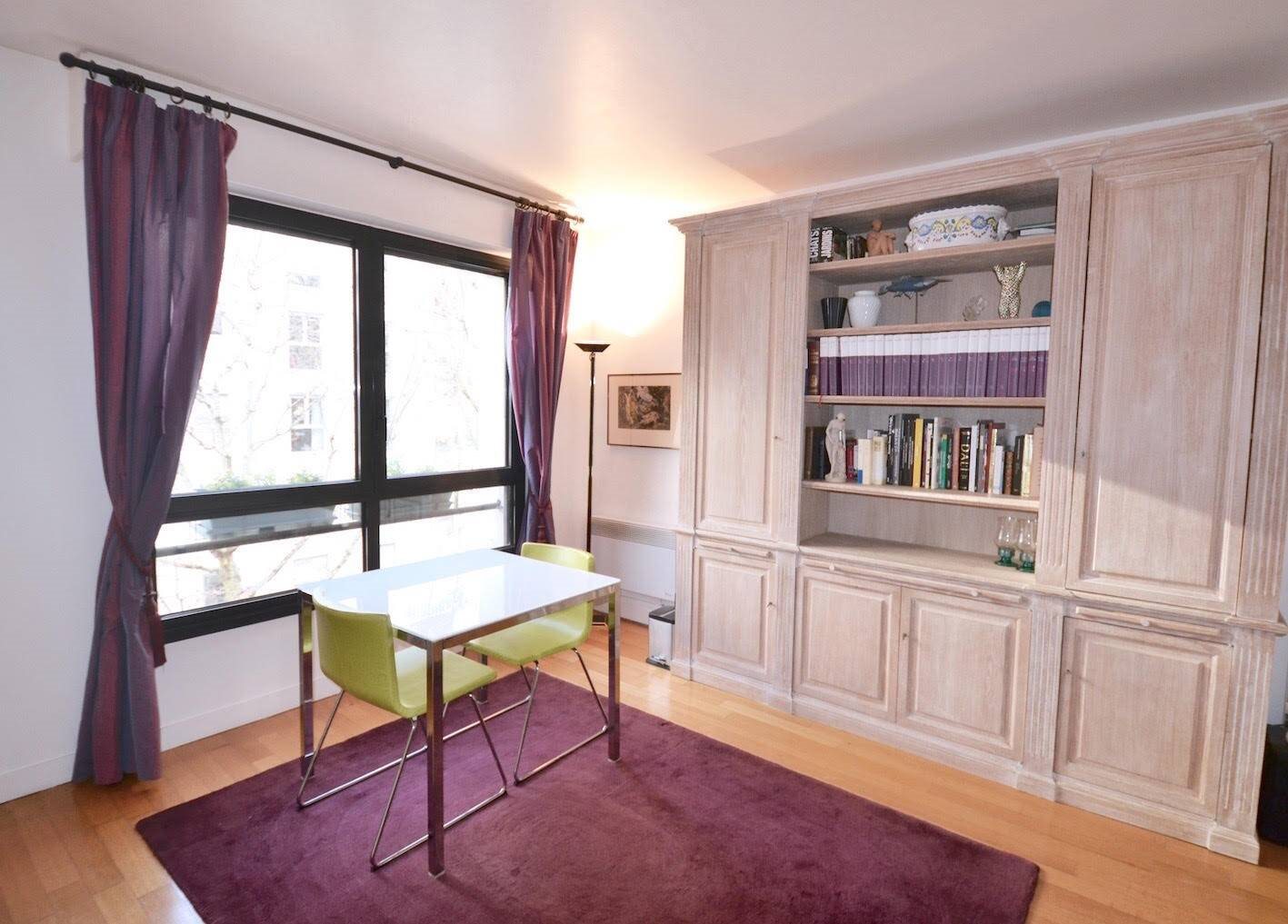 Village d'Auteuil, Rue Mirabeau, 1 min métro, bus et commerces, appartement 2 pièces meublé comprenant : entrée, séjour, cuisine équipée, chambre, salle de bains, Wc séparé. Parfait état. Chauffage individuel électrique. Libre immédiatement.