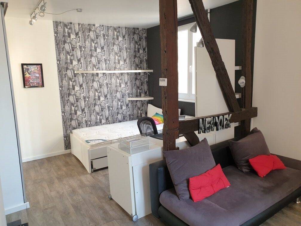 Studio entièrement meublé de 26 m2, rue de Lenôstre, dans résidence sécurisée au 1er étage donnant sur cour, comprenant un espace nuit avec espace pour un bureau et rangements, placard avec penderie, coin salon avec cuisine ouverte et équipée, salle d’eau. Mac...