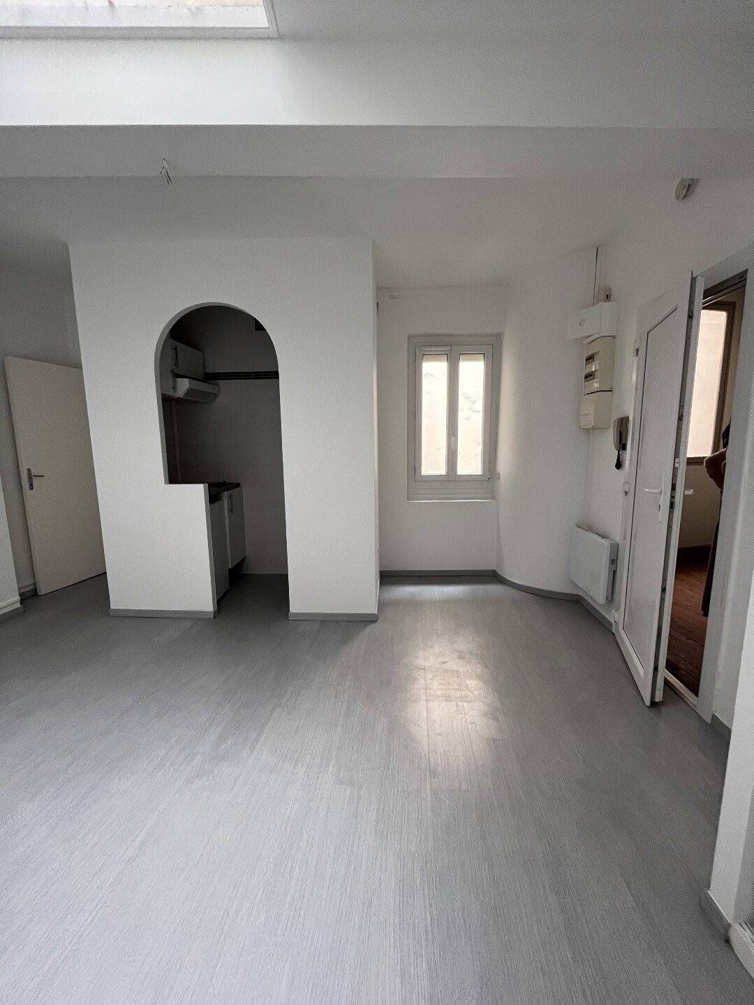 Rue Victor Hugo, un très bel appartement au 2ème (et dernier) étage, composé d'un séjour avec coin cuisine semi-séparé (équipé d'un frigo Top, de plaques électriques, et de meubles de rangement), un coin chambre séparé, une salle d'eau avec Wc. L'appartement e...