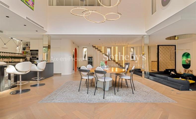 Découvrez une opportunité rare à Aix-en-Provence ! Situé dans le prestigieux quartier Mazarin, en plein cœur historique de la ville, cet appartement duplex d'exception vous invite à un cadre de vie idyllique. Niché au calme, ce bien exclusif construit en 2021, s'étend sur 284 m² de surface habitable avec de très beaux volumes et sublimé par une décoration soignée sur un joli jardin avec piscine de 150 m². À l'intérieur, chaque détail a été pensé pour votre confort. Une cuisine élégante, une buanderie, un bureau, quatre chambres en suite avec salles d'eau privatives, dont une suite parentale avec salle de bains, double dressing et terrasse privative. La salle à manger spacieuse et le salon lumineux offrent des espaces de vie parfaits pour recevoir. Pour vos moments de divertissement, un Home Cinema à la pointe de la technologie est également à votre disposition. La fonctionnalité de cet appartement se prolonge avec un ascenseur desservant le premier étage et un parking en sous-sol, lui-même équipé d'un lift facilitant l'accès et le rangement des véhicules. Laissez-vous séduire par la clarté exceptionnelle, la superbe exposition et l'état impeccable de ce bien d'exception. Contact Dorothée Pollin +33(0) - Mandat N°1242 - Sotheby's Aix en Provence, la référence de l'immobilier de luxe -