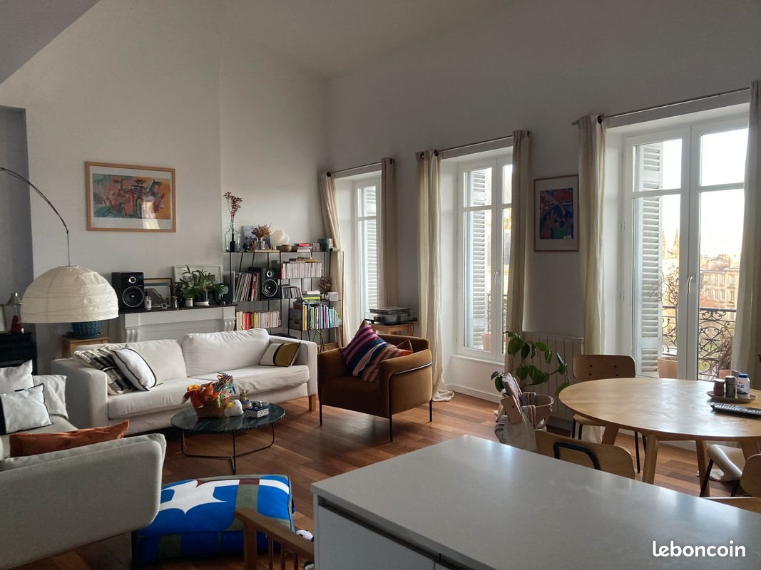 Bonjour, Nous vendons notre appartement situé quartier St Michel (place Canteloup), au 4ème étage sans ascenseur d’un immeuble ancien. Surface de 87m2 loi Carrez. Pièce de vie (salon - cuisine) très lumineuse de 30m2 avec plafond cathédrale et vue dégagée sur la place, exposition est, 2 cheminées décoratives. Bureau avec rangement accolé à cette grande pièce, pouvant faire office de chambre (9m2). Les 2 autres chambres mesurent 16m2 (puits de jour + velux) et 11m2 (velux) et sont disposées au calme de l’autre côté de l’appartement. Salle de bain avec baignoire donnant sur puits de jour, Wc séparés. Possibilité de vente ou location d'une place de parking (voiture + vélos) à 3 minutes à pied. Proche du marché des Capucins, 3 minutes à pied de l’arrêt Porte de Bourgogne (trams A,C,D,E,F). Gare St Jean à 5 minutes en vélo, 3 arrêts de tram, 20 minutes à pied. Quai des Sports à 5 minutes à pied. Diagnostics octobre 2025 Montant estimé des dépenses annuelles d'énergie pour un usage standard : entre 1 180 € et 1 630 € par an indexées aux années 2021, 2022 et 2023 (abonnements compris). Consommation électrique : 133kWh/m2/an N'hésitez pas à nous pour plus d’informations ou photos. Agences, merci de vous abstenir.