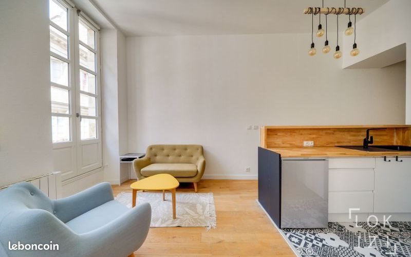 Bordeaux hyper-centre (proche place de la Bourse), au coeur du quartier historique de Bordeaux, avec les Tram A, C et D à proximité immédiate, notre agence Lokizi - La location meublée vous propose ce charmant appartement T2 de 37m², récemment rénové, situé au 2ème étage d'un immeuble pierre. Entièrement meublé, le logement comprend : - séjour avec cuisine ouverte équipée (four, plaques de cuisson, réfrigérateur, micro-onde, kit vaisselle, petit électroménager) - 1 chambre double couchage avec placard-penderie - salle de bains (baignoire + lave-linge séchant + Wc). Charme de l'ancien rénové (cheminée et parquet). Bon à savoir : fibre / kit couette et oreillers fourni / complément de loyer (inclus) pour emplacement, qualité des équipements et mobiliers (cf zone soumise à encadrement de loyer) A proximité tous commerces, nombreux restaurants, shopping quartier Ste Catherine, places du Parlement et Saint Pierre, promenade des quais de Garonne.. Transports : batCub, tram A, C et D sur place ou à proximité immédiate (arrêt place de la Bourse ou Place du Palais, avec accès direct gare Saint Jean).