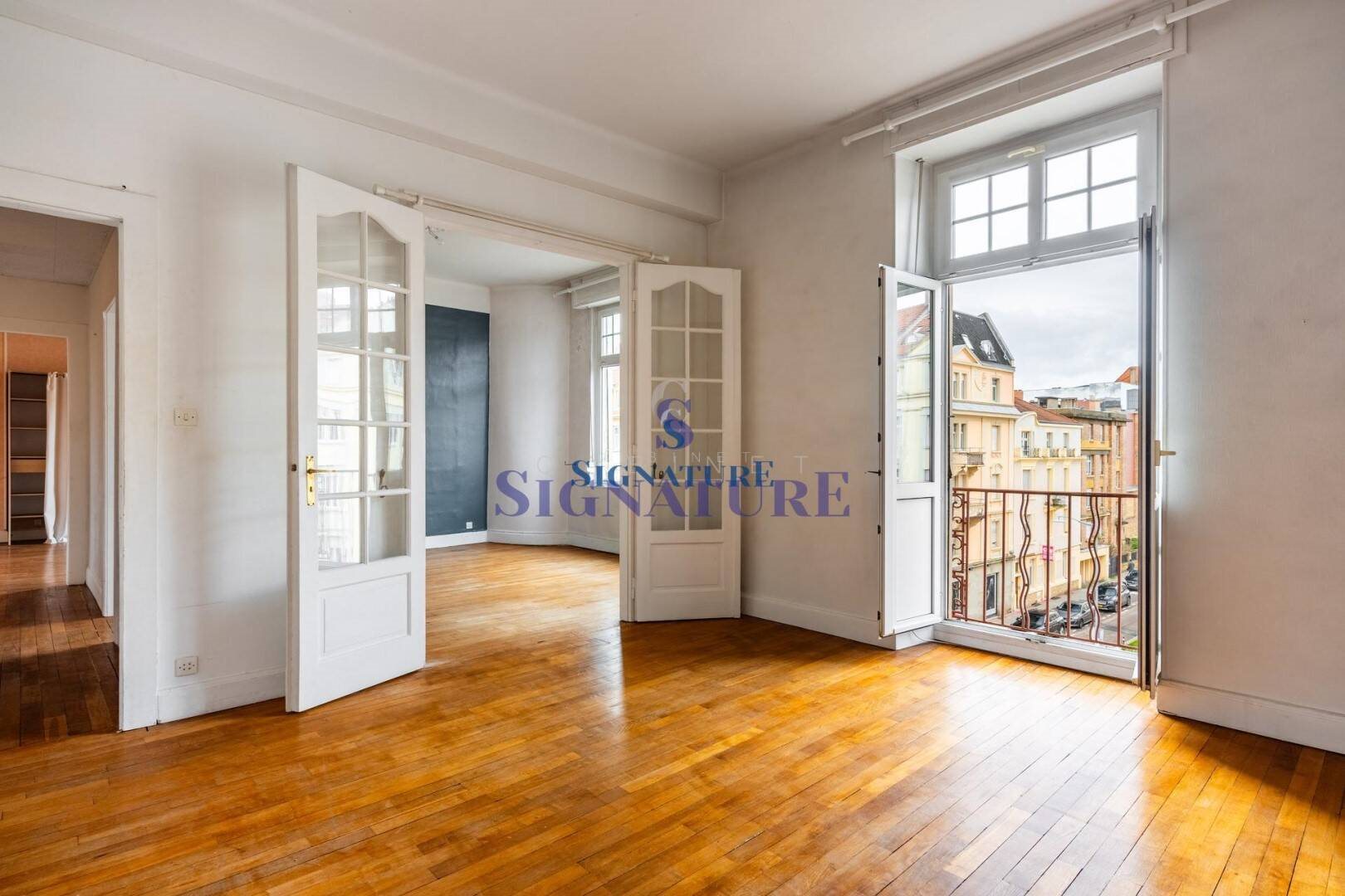 Collection ''Automne / Hiver'' Metz - Sainte-Thérèse 10min Metz-Gare Charme et caractère pour cet Appartement T4 situé au troisième étage d'un immeuble bourgeois bien tenu, comprenant une entrée, une cuisine indépendante accès balcon, une salle à manger, un salon, deux chambres, une salle de bain et w-c. Au sous-sol: Une Cave. Charges mensuelles : 60euros Nombre de lots : 5 Taxe foncière: 1.200euros Dpe : E Etat des risques consultable é Cabinet Signature : L'immobilier a du caractère !!