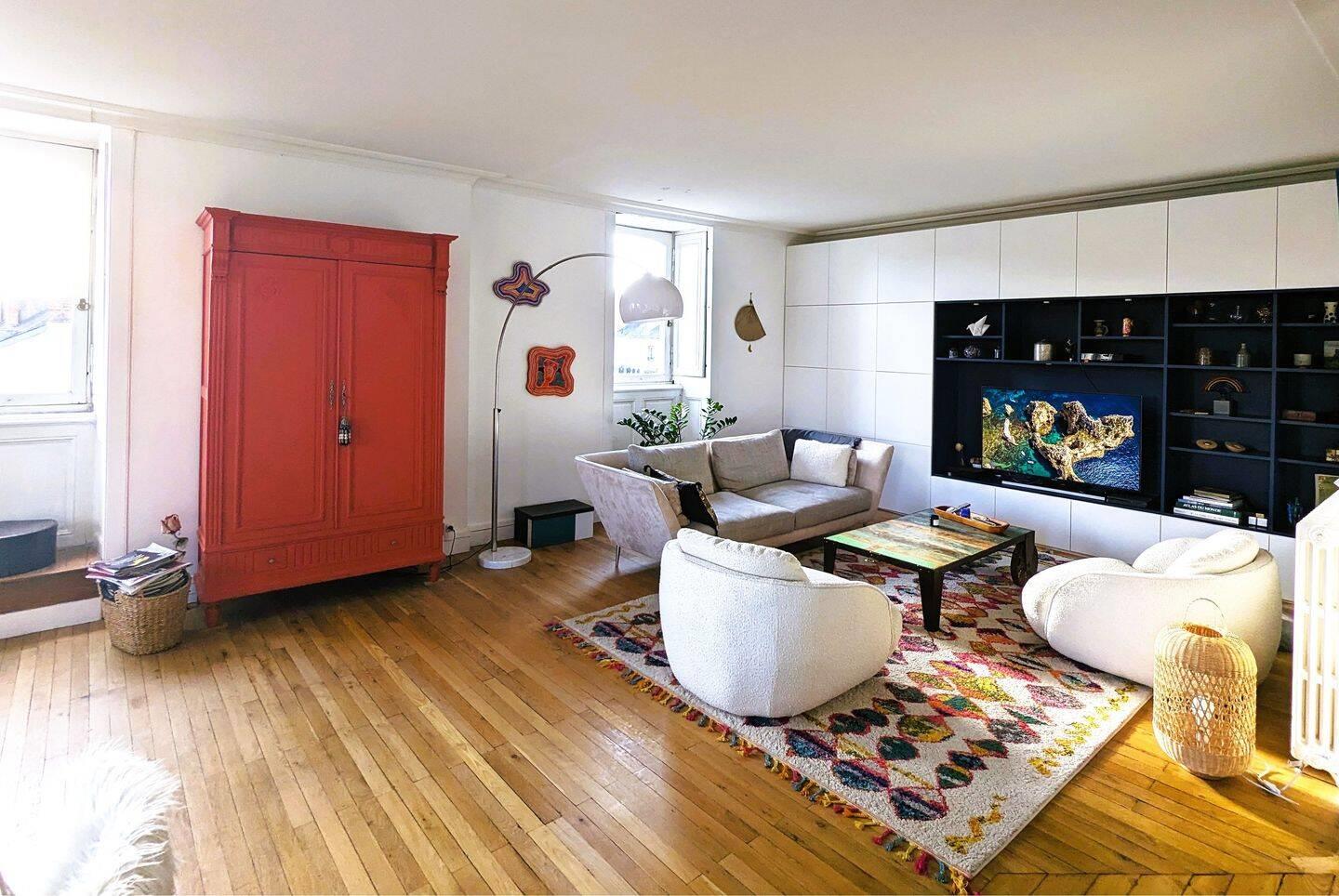 Idéal famille nombreuse ou collocation : appartement ancien, 193m2, rénové (intérieur + ravalement extérieur), disposition en L, traversant, 4 expositions, situé sous les combles greniers, au 4ème étage sans ascenseur. Une grande pièce de vie lumineuse en an...