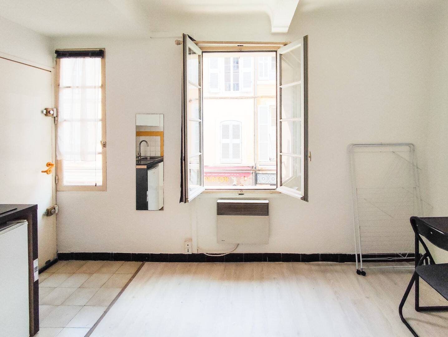 Studio vide ou meublé de 15m² rue des Tanneurs au 1er étage centre-ville entrée pièce principale salle d'eau loyer 450€cc honoraires 195 €Ttc chauffage et eau chaude individuels électriques. Agence Aixoise d'Administration de Biens Immobilier Malherbe