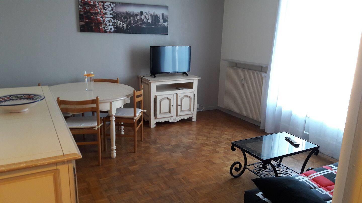 A louer T2 meublé 50 m2 quartier Condorcet / Grand Treuil / Maupassant, comprenant un séjour avec balcon, une cuisine séparée, une chambre avec balcon, une salle de bain avec Wc. 2Ème étage, chauffage collectif, interphone, cave, parking. Proximité commerces ...