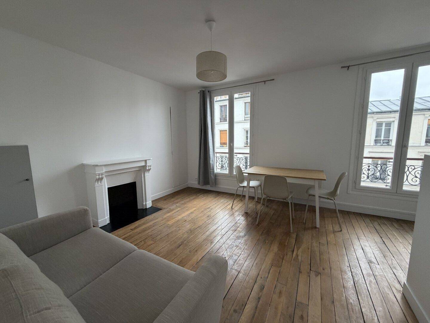 Grand 1 pièce avec coin nuit. Rue Léon Frot (entre les no 40 et 48). Lumineux, exposition sud. Parquet d’origine, grande fenêtres. Un séjour avec coin chambre semi-séparé (lit 140 cm), une cuisine séparée et une salle de bain avec grande douche à l’italienne. Lave-Va...