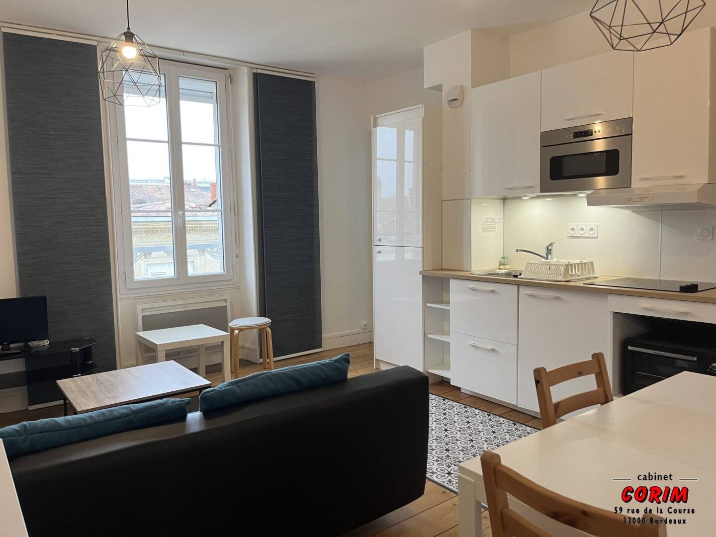 Bordeaux - Jardin Public, Au 2ème étage d'un immeuble en pierre, T2 meublé de 34 m². Il se compose d'une entrée, séjour avec kitchenette américaine équipée, chambre, salle d'eau et wc séparés. Eau et électricité incluses dans les charges. Buanderie (avec lave-linge et sèche linge) commune. Libre de suite Honoraires de 448 euros Ttc à la charge du locataire comprenant 103 euros Ttc pour l'état des lieux. Zone soumise à encadrement des loyers. Loyer de référence majoré (loyer de base à ne pas dépasser) 719.93 euros/mois. Loyer de base 710 euros/mois. Provision sur charges 131 euros/mois, régularisation annuelle. Dépôt de garantie 1 420 euros. Classe énergie D, Classe climat B Montant estimé des dépenses annuelles d'énergie pour un usage standard : entre 800.00 euros et 1140.00 euros sur les années 2021, 2022 et 2023 (abonnements compris). Les informations sur les risques auxquels ce bien est exposé sont disponibles sur le site Géorisques : .