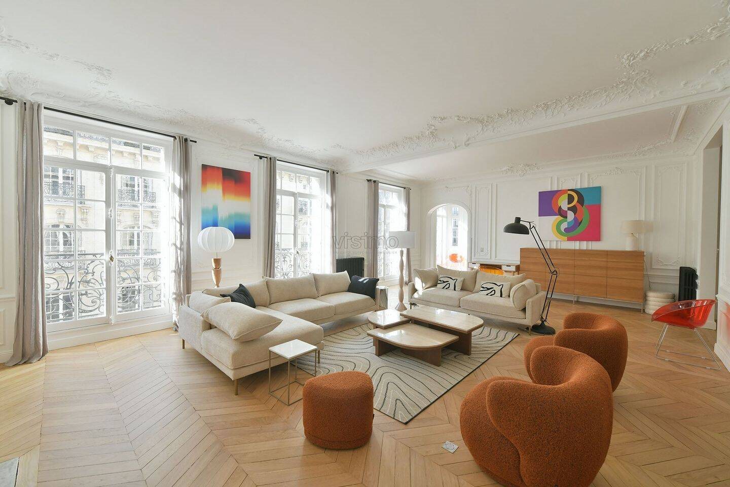 Ce magnifique appartement meublé de 246,78 m2 à proximité du Trocadéro et vue sur la Tour Eiffel est situé Avenue D'Eylau au 3 eme étage avec ascenseur dans un superbe immeuble art Déco - Il est composé d'une entrée élégante, un double séjour/salle à manger lumineux, une suite parentale avec Sdb et dressing, deux chambres disposant de leur salle de douche, deux autres chambres, une cuisine dinatoire équipée( plaques, hotte, four, Mw, Frigo, Lv), une buanderie (Ll et Sl), une Sdb avec douche + Wc et deux Wc séparés - mobilier raffiné/parquet point de Hongrie/moulures - chauffage & eau chaude gaz ind - Loyer mensuel : 12 000 euros cc dont 394 euros de provisions pour charges - Baux Societe Uniquement - photos, plan et situation géographique