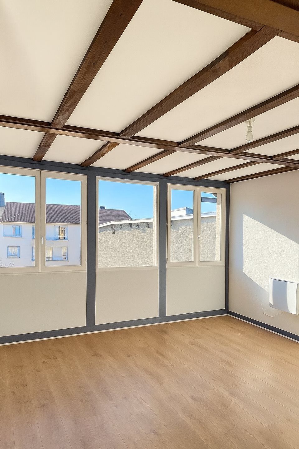 Très beau T2 de 57m2 refait à neuf avec poutres apparentes composé d'une cuisine non équipée, salle de bain, Wc séparé, grand placard et chambre attenante, grande pièce à vivre lumineuse, dans un petit immeuble ancien de 11 logements en plein coeur du centre vi...