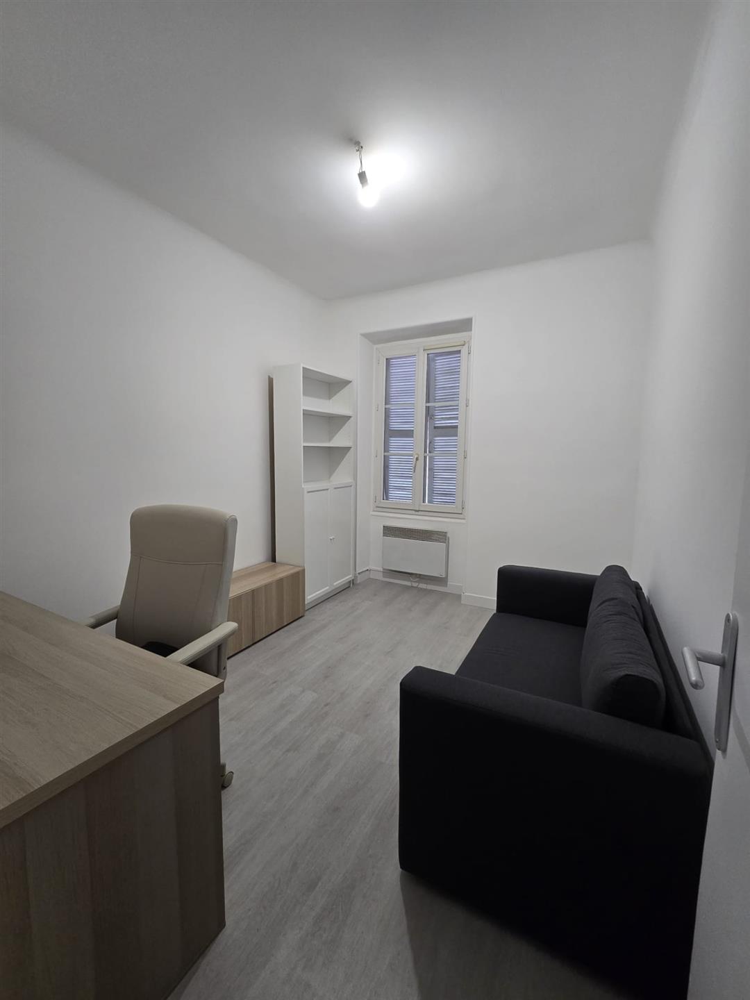 Appartement T2 meublé, situé 24 rue Tonduti de l’Escarène, 06000 Nice, au 5ᵉ étage. Il se compose d’une entrée avec placard, d’un séjour (canapé, bureau, bibliothèque), d’une cuisine, d’une chambre (lit double 160 cm, armoire) et d’une salle d’eau avec WC. Disponible jusqu’au 15 août 2026. Pour tous renseignements, vous pouvez nous ou par mail